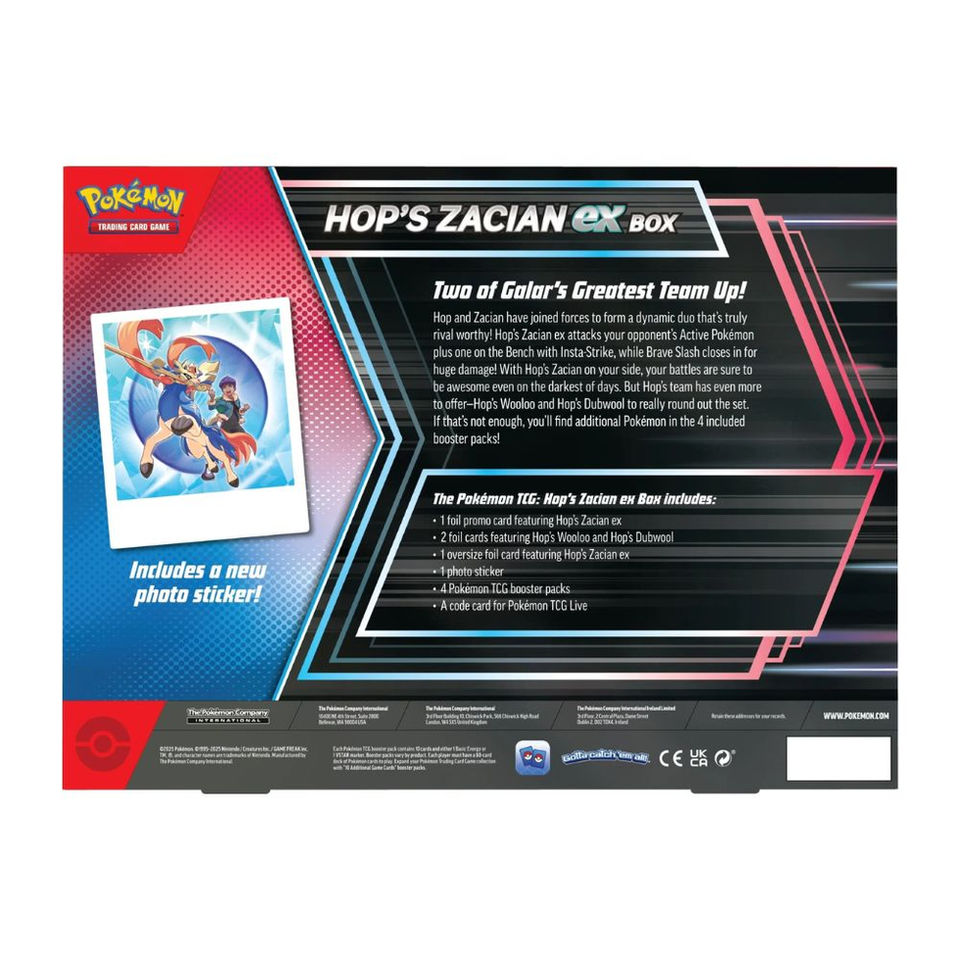 The Pokémon TCG: Hop’s Zacian ex Box includes: